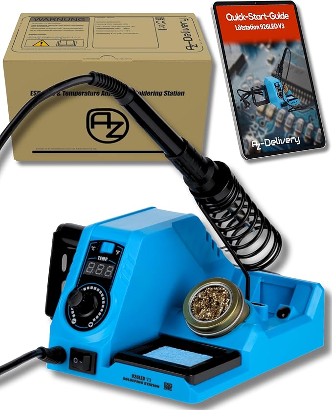 Egal, ob Sie ein Hobbybastler oder ein erfahrener Techniker sind, mit diesem Lötstationsset erzielen Sie professionelle Ergebnisse. Die robuste Bauweise und die benutzerfreundlichen Funktionen machen das AZ-Delivery Lötstation 926LED V3 Lötkolben-Kit zu einer ausgezeichneten Wahl für DIY-Projekte, Reparaturen und alle Arbeiten, die Präzision und Zuverlässigkeit erfordern. Durch die Kombination von effizienter Heiztechnologie, präziser Steuerung und hochwertigen Komponenten ist dieses Set ideal für eine Vielzahl von Anwendungen in Elektronik und Heimwerken.