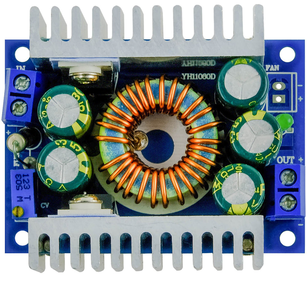 Onze AZDelivery XL4016E1 Step Down Module DC-DC spanningsregelaar is uitgerust met een schakelfrequentie van 300 kHz, in staat om een 12A belasting met een hoog rendement van maximaal 95%, lage rimpel en een uitstekende lijn-en belastingsregeling aan te sturen. Deze spanningsregelaar maakt gebruik van XL4016 switch regulator chip, met MBR10200 dubbele gelijkrichter.