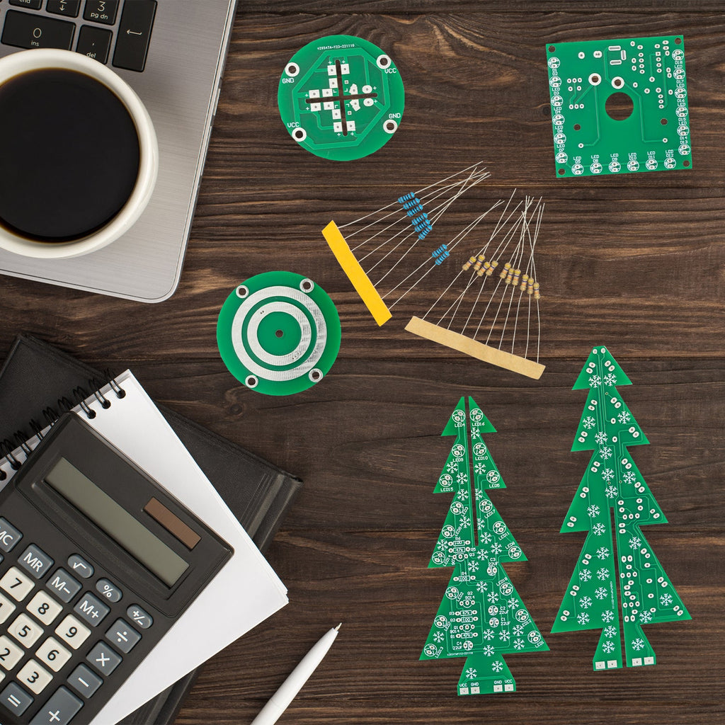 Unser Lötset präsentiert einen Weihnachtsbaum, der sich nicht nur dreht, sondern auch schön leuchtet. Ein garantierter Hingucker und Lernspaß zugleich.